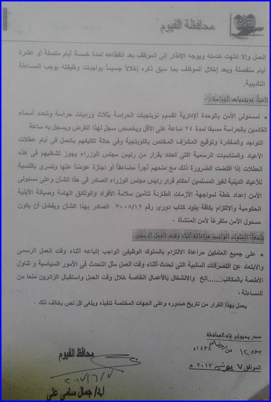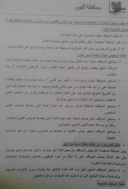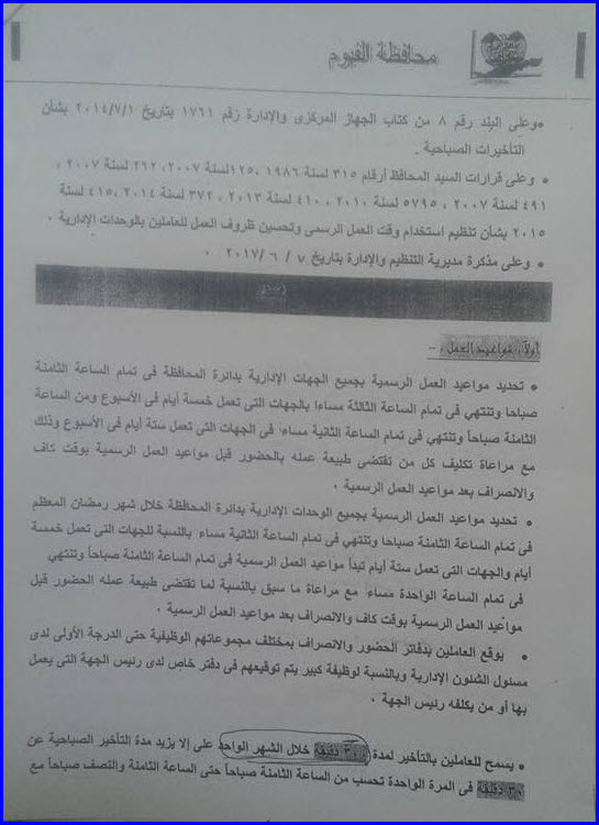 قرار محافظ الفيوم رقم 324 بشأن تنظيم مواعيد العمل والاجازات.rar | 18 | 21-03-2022 11:57 am |