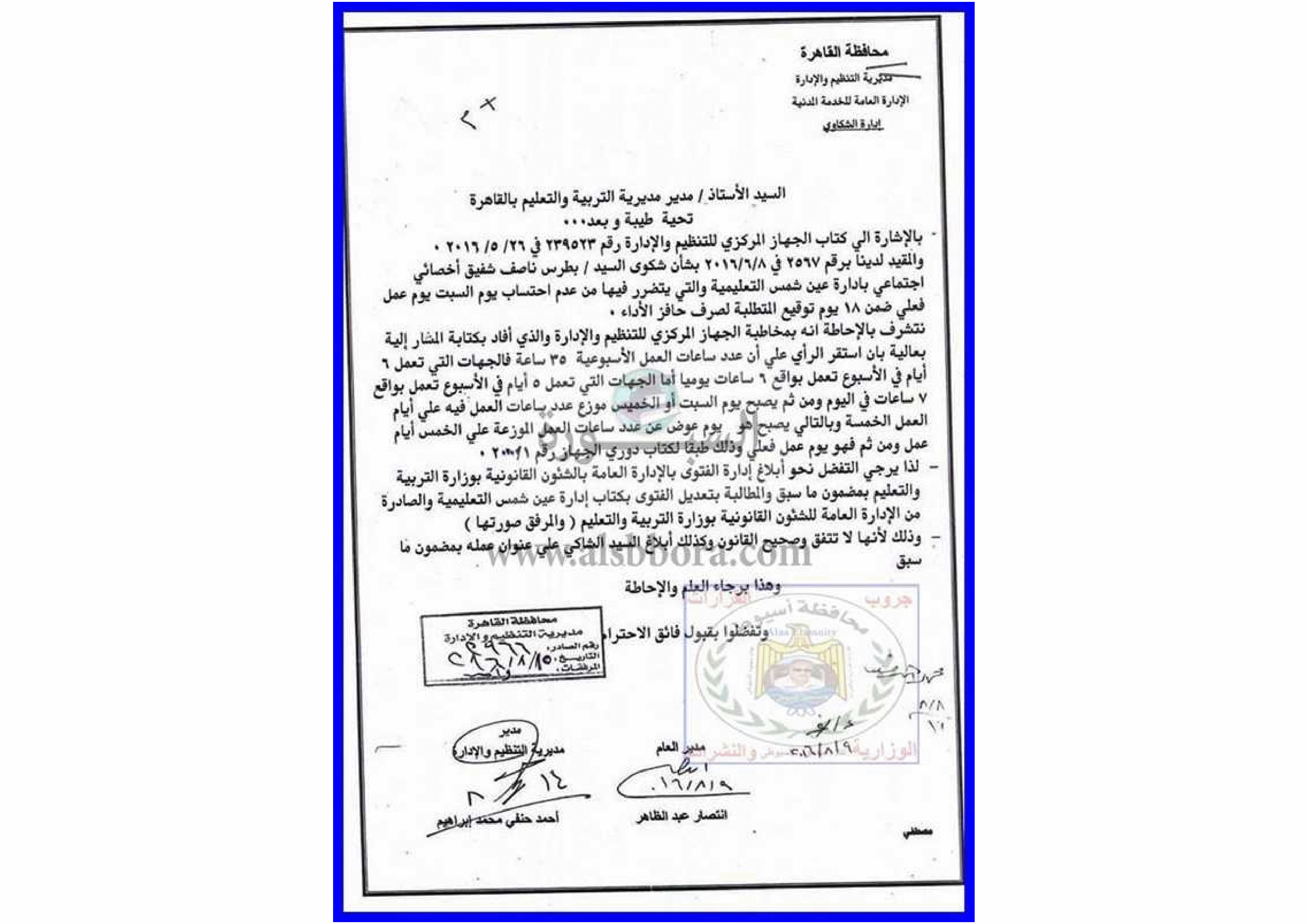عدد ساعات العمل للمعلمين وعدد التوقيعات اللازمة للحصول على الحاف...