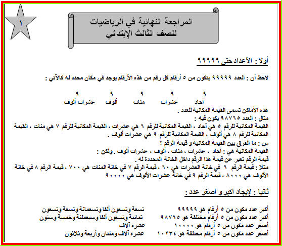 مذكرة مراجعة ليلة الامتحان رياضيات 3 أبتدائي ترم أول 2015.rar |