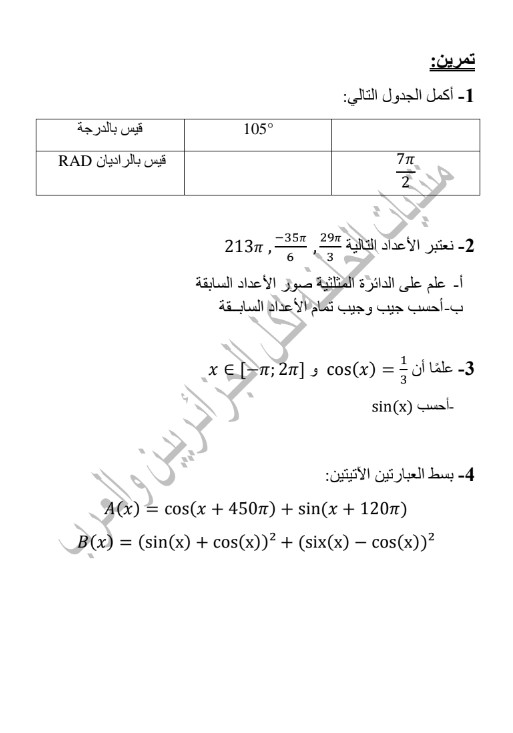 تمرين رائع حول درس الدائرة المثلثية للسنة الاولى ثانوي - مدونة حلم... |