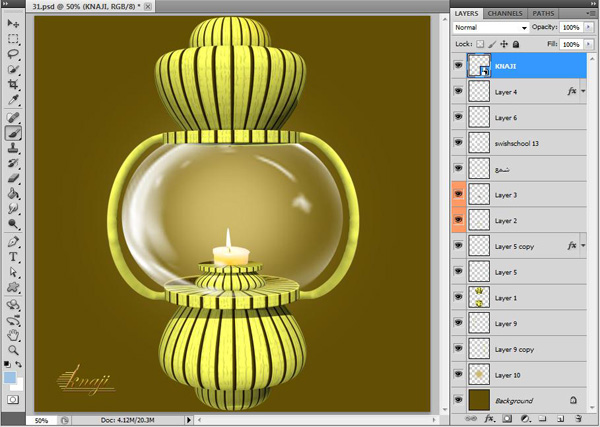 كاوليس فانوس ثري دي منفذ في برنامج الفوتوشوب 3.jpg |