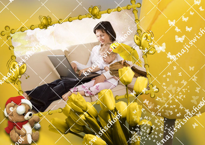 فريم رائع مع الزهور الصفراء ودبدوب وتاثيرات بملف psd دون خلفيه.rar |