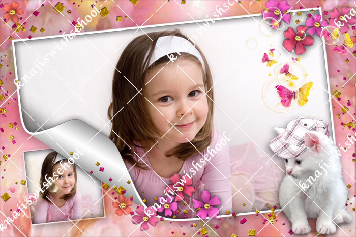 فريم زهري رائع مع الزهور وقطه وتاثيرات بملف psd دون خلفيه.rar |