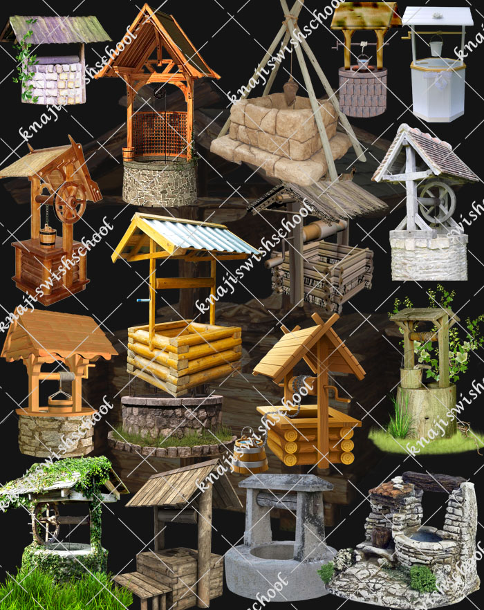 مجموعه من الابار الخشبيه والحجريه الرائعه دون خلفيه.jpg |