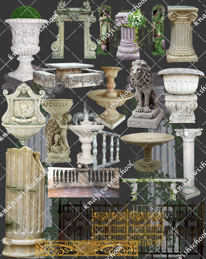 مجموعه رائعه من اعمدة الرخام والنوافير والاثريات وابواب الحديد و... |