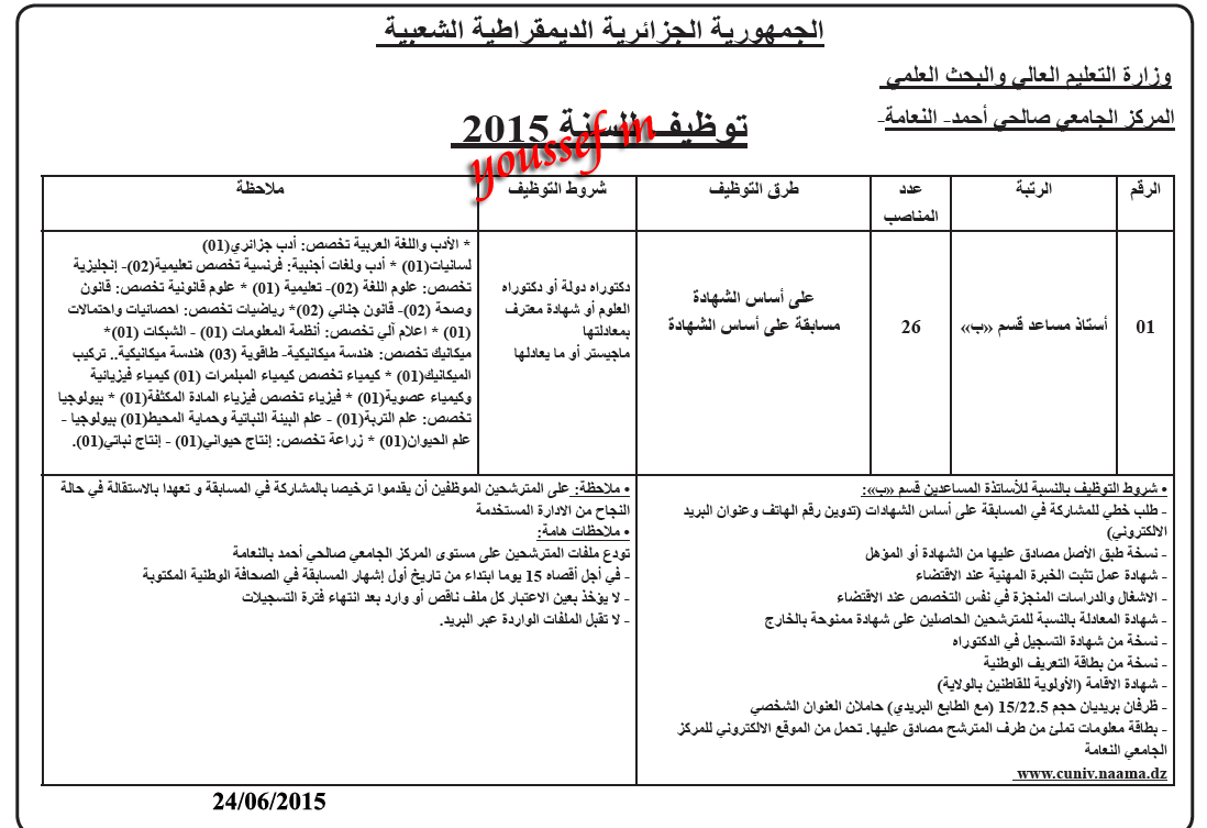 مسابقة ماستر -المركز الحامعي النعامة- لسنة 2015-2016.pdf | 24 | 08-04-2024 12:42 pm |